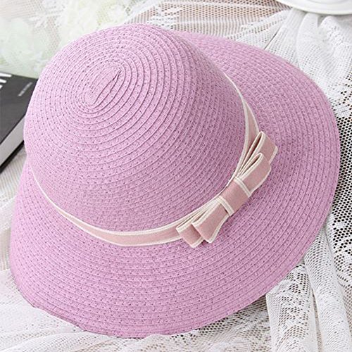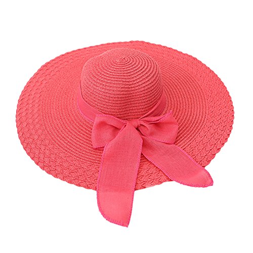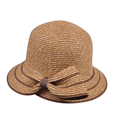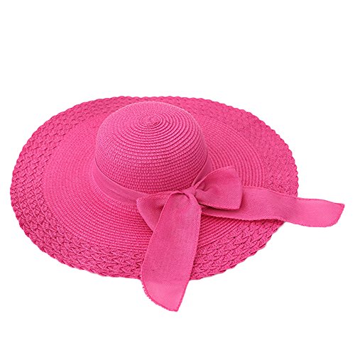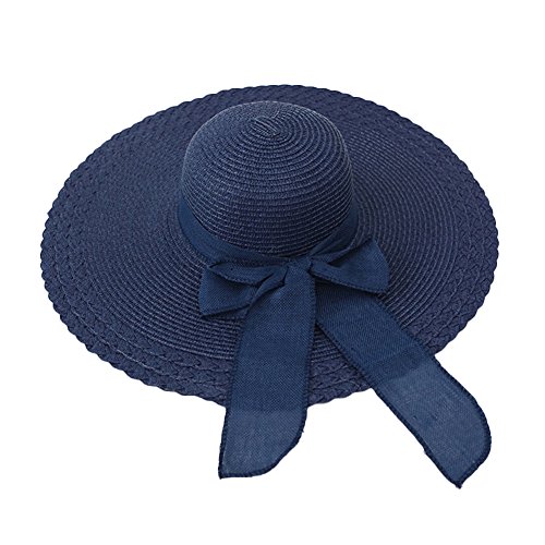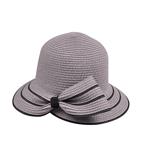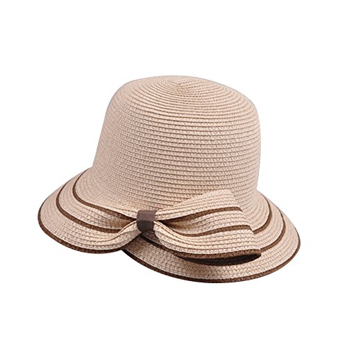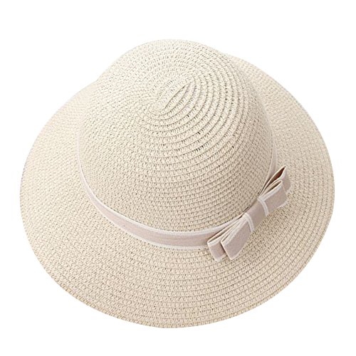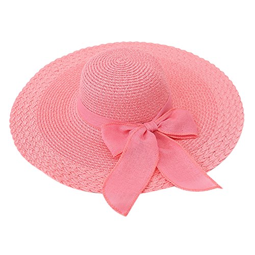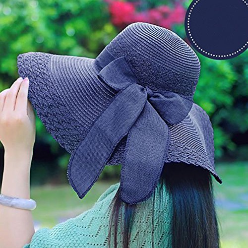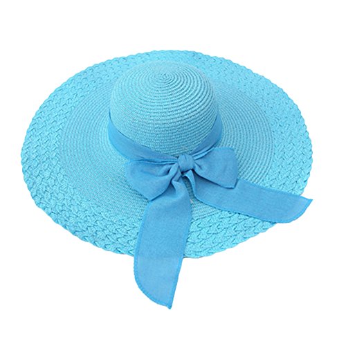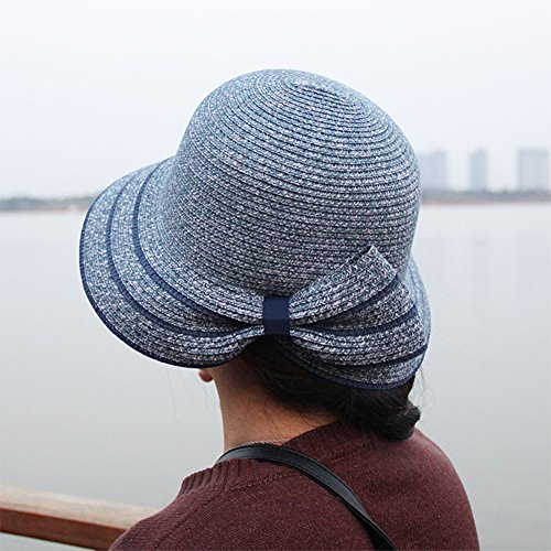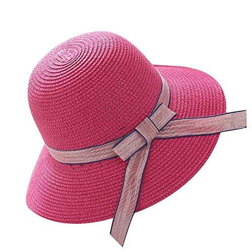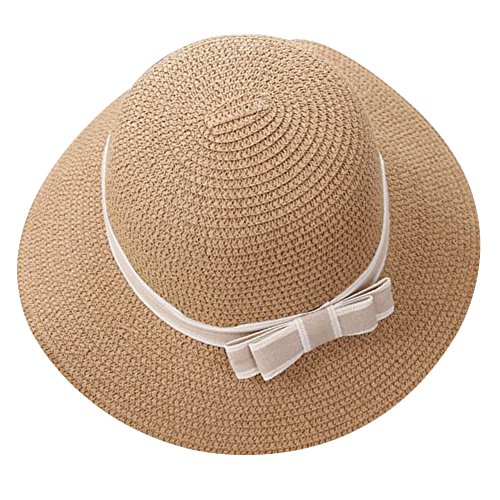| diffstyle Women Bowknot Straw Hat Packable Wide Brim Sun Hat Summer Beach Cap |