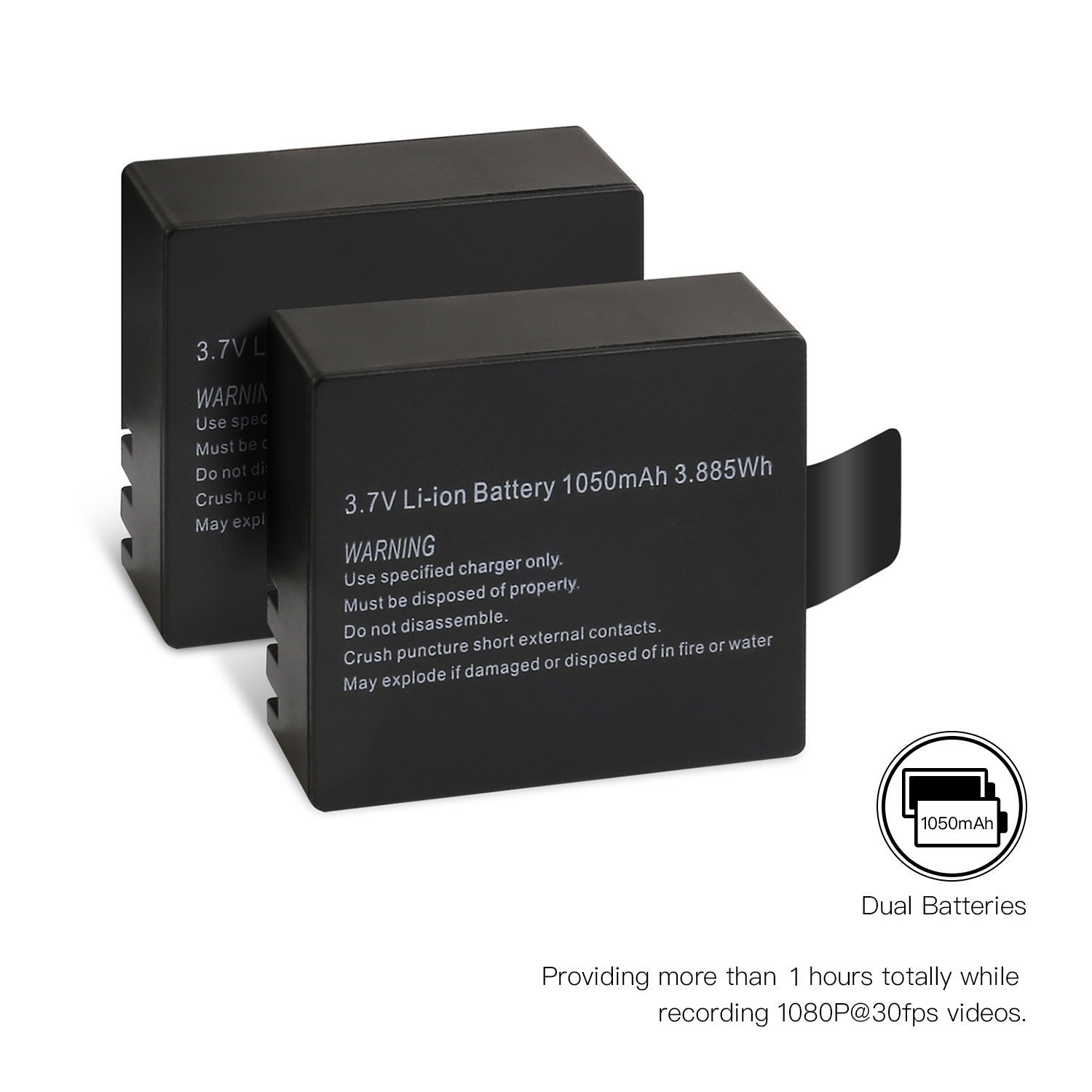 The capacity of each battery is 1050 mAh and it is compatible with APEMAN action camera.