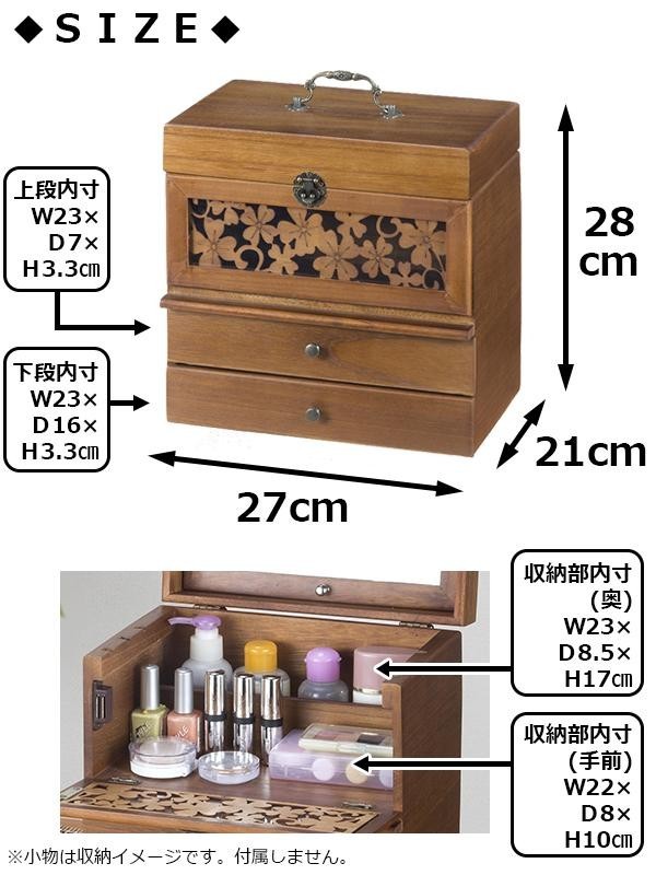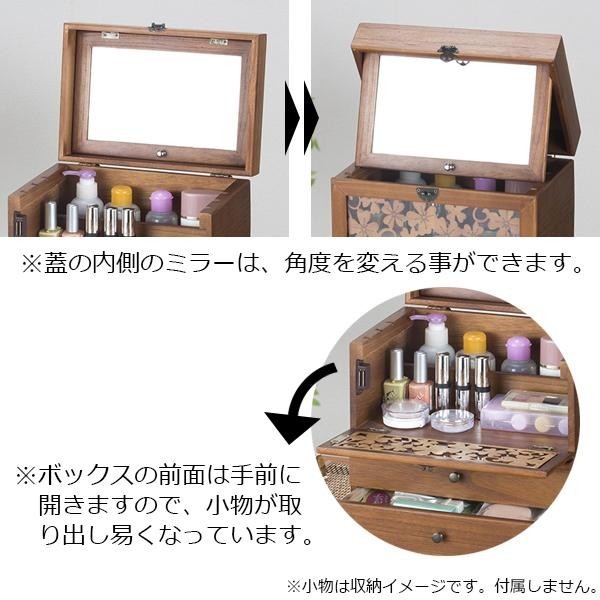 | 小物からボトル類まで、ごちゃつきがちなコスメアイテムをすっきり収納出来ます。蓋を開くと鏡が出てくるので、これ一つでメイクはバッチリ!! |