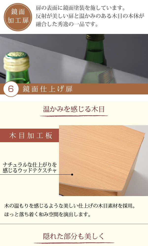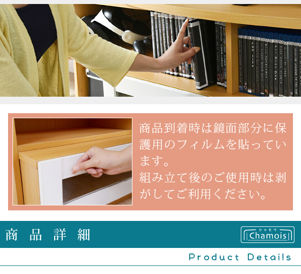 ●鏡面仕上げできらりと輝く、ロータイプテレビボード