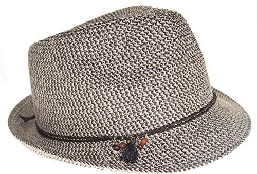 Studio : Nine West Publisher : Nine West Binding : Apparel Product Description Finish your look with this fedora hat from Nine West featuring a braided construction, built-in sweatband, beaded accents, tassel a 2' brim. Hat is packable for easy storage. Paper Braid. Polyester. 0