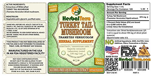 -. Feature : We produced this extract using a cold maceration method of extraction to ensure that the broad spectrum of therapeutic plant compounds - vitamins, minerals, alkaloids, flavonoids and other active constituents of the herbs are fully extracted and maintained. / Expertly extracted under strict quality standards and procedures from Turkey Tail Mushroom Dried Mushroom. We meticulously produce our extracts according to precise standards where each herb is extracted according to the distinct characteristic of each plant! / Super concentrated Turkey Tail Mushroom tincture: dry plant material / menstruum ratio is 1:3! Extraction rate: 1 ml of extract is equal to about 330 mg of dried herb! / We produce our liquid extracts using ONLY natural ingredients! All herbs are organically grown, ethically wild harvested, or selectively imported. Our extracts do not contain GMO, gluten, artificial colors, heavy metals, preservatives, pesticides or fertilizers! / Proudly made in the USA in an FDA registered facility under srtict laboratory control.
