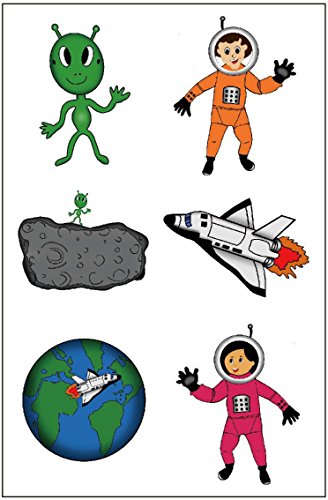 -. Feature : Premium Quality: Easy to Apply & Long Lasting / 6 sheets x 6 = 36 tattoos / Fun and colorful! / Each tattoo is 1.5 - 1.75 inches wide / great for space party favors!