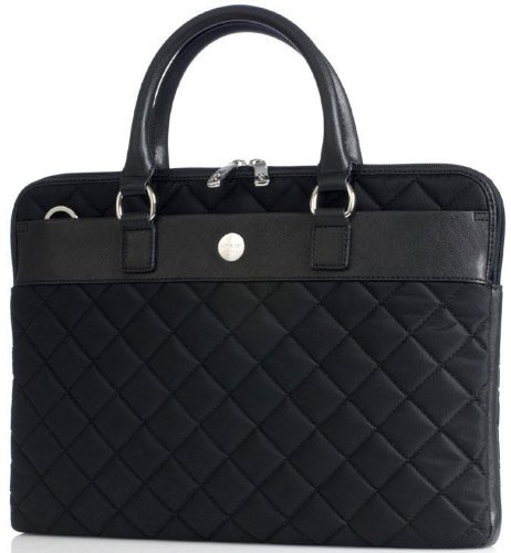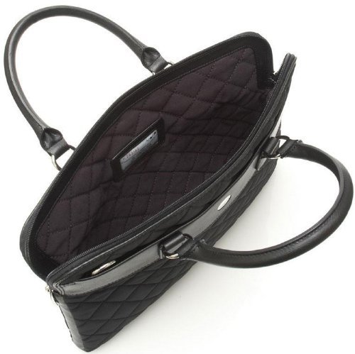 -. Feature : Quilted-nylon exterior, trimmed in black textured-material, detailed with nickel-colored hardware / Built-in padded laptop-sleeve protects a 11" computer / Front and back slide pockets / ggplant-colored lining with soft "peach" hand-feel