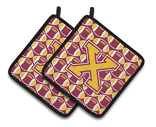 Caroline's Treasures Letter x Football Maroon & Gold Pair of Pot Holders CJ1081-XPTHD, 7.5HX7.5W, Multicolor