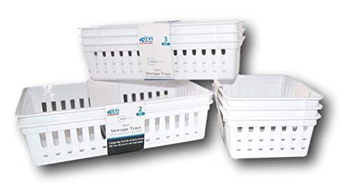 Plastic Storage Trays Baskets Organization Bundle - 3 Sizes, Set of 8