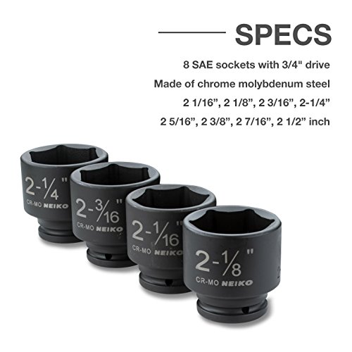 Neiko 02392A 3/4" Drive Jumbo Shallow Impact Socket Set, 8 Piece | SAE (2-1/16" - 2-1/2") | Cr-Mo Steel