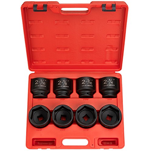 - Includes eight large SAE socket sizes (2-1/16, 2-1/8, 2-3/16, 2-1/4, 2-5/16, 2-3/8, 2-7/16, 2½ inch) in a blow-molded carrying case for easy storage