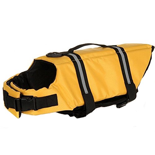 -. Feature : Most convenient top grab handle:A high quality loop to fasten a dog leash while walking the dog,either attaching them to a boat hook when surfing. / Vibrant color for good visibility at night or in dark place with reflective stripes.Although it is swimming in the water, you also can distinctly know where your doggy is. / High quality material,straps and fastening buckles. Underbelly with mesh fabric that allow for quick drying and proper drainage. / These vests are adjustable in the front and also under the belly. It not only closes with velcro, but also with a snap buckle. Front float assists in keeping dog's head above water. / Exchange and refund policy:Feel free to contact us if any defects or issues occurs to you within 30 days after you receiving this dog life jacket,we shall response as soon as possible.