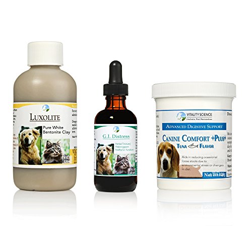 -. Binding : Misc. -. Brand : Vitality Science -. Feature : 3 Part Program: Luxolite, GI Distress, Canine Comfort Plus / Relieve your dog's occasional loose stools due to environmental stress or changes in diet. / Supports a healthy GI tract, and promotes healthy digestion. -. Label : Vitality Science -. Manufacturer : Vitality Science -. NumberOfItems : 3 -. PackageQuantity : 3 -. ProductGroup : Pet Products -. ProductTypeName : PET_SUPPLIES -. Publisher : Vitality Science -. Studio : Vitality Science -. Title : TRDV Protocol for Dogs - 3 Part Program for Digestive Health and Stability