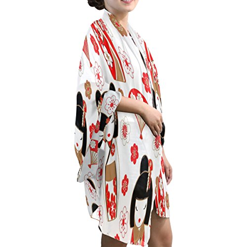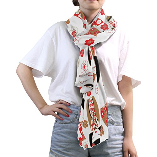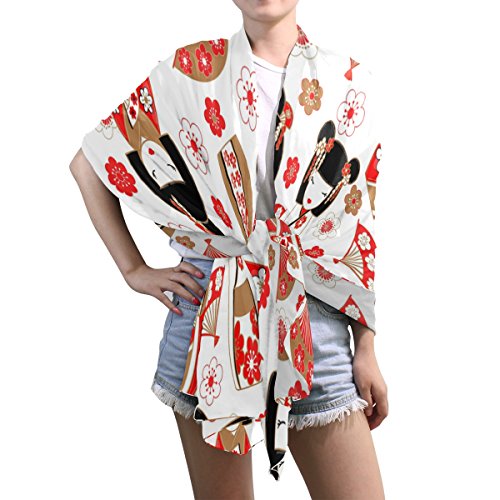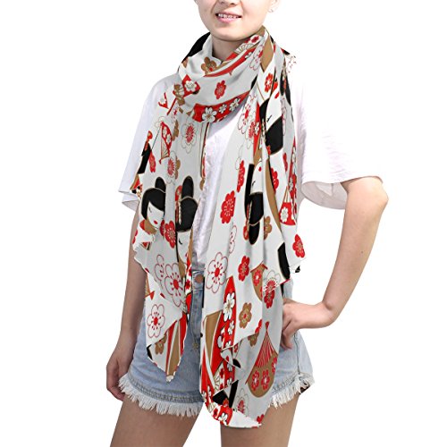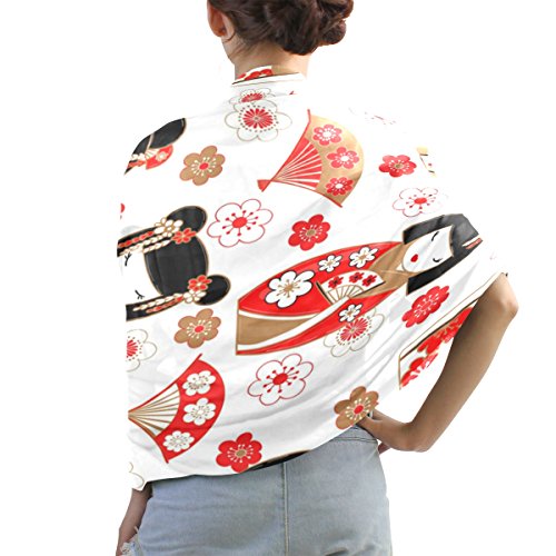 (ALAZA)/Accessories/Cold Weather Accessories/DIRECT FROM USA/ALAZA Japanese Dolls Kokeshi Cherry Blossom Chiffon Silk Scarf Shawl Wrap