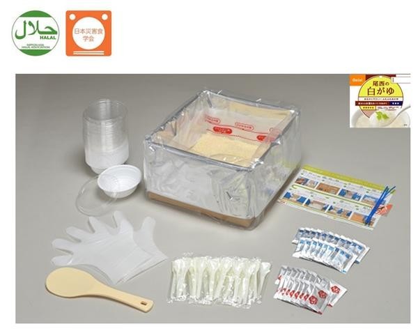 | セット内容 | アルファ米50食分、弁当容器×50、スプーン×50、しゃもじ×1、開封用カッター×1、衛生手袋×1、針金入りビニール紐×3、作り方説明書×1、梅しそ×50、食塩×50 |