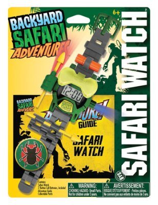Studio : LearningLAB Publisher : LearningLAB Binding : Office Product Product Description The Backyard Safari, Safari Watch from Poof Slinky is the right kind of gear to start your outdoor adventures. Designed for ages 6 years and older, this is a real working watch with lots of special features including an LED light to shine on nocturnal creatures, a UV light to spot close-up details in bugs, and an invisible UV marker so you can take notes on your findings. Includes a collectible, embroidered iron-on patch and an activity-filled Adventure Guide. Requires 2 button cell batteries (included). Package dimensions: 6.5" x 9" x 1". Please note: small parts, not intended for children under 3 years. Backyard Safari Adventures! Be proud of your patches! Many Backyard Safari products come with a pop-up field guide and an exclusive collectible patch. Collect all 12 patches. The field guide is filled with rich illustrations and exciting missions. Once you complete the missions, you are rewarded with a special patch that can be ironed onto your Cargo Vest as proof of your accomplishments. 0
