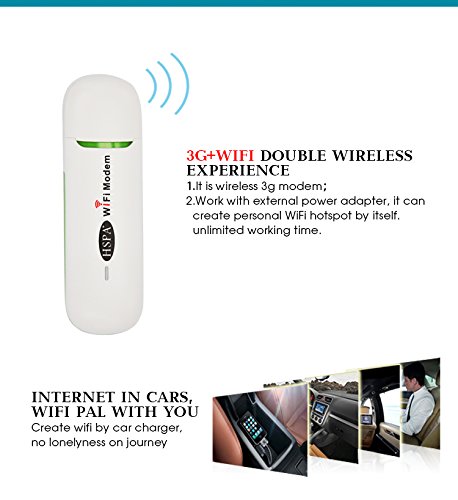 -. Binding : Electronics -. Brand : KuWFi -. Color : White -. EAN : 0652252028549 -. Feature : not only 3G USB Modem! This is USB Wi-Fi Modem Router. / Wireless access is available on both 3G network and Wi-Fi networks. / Internet connection sharing, up to 8 users can access the Wi-Fi network at the same time. / Work with external power supply, no limited working time. / Frequency Support: 2G: GSM/EDGE 900/1800 MHz. 3G: WCDMA(HSPA+/HSPA/UMTS) 2100 MHz. -. Label : SunRise -. Manufacturer : SunRise -. Model : U903 -. MPN : BC23804 -. PackageQuantity : 1 -. PartNumber : BC23804 -. ProductGroup : PC Accessory -. ProductTypeName : COMPUTER_COMPONENT -. Publisher : SunRise -. Studio : SunRise -. Title : KuWFi WIFI 21.6Mbps 3G wifi Dongle Mobile Wifi Moden Router 3G USB Modem+WiFi Router Sim Card Dongle Support 2G/3G netowrk HSPA+/HSPA/UMTS 2100MHz. EDGE:900/1800MHZ for outdoor and indoor on the bus or in Car with TF card share (Moblie phone sim card)not including . need buy in local city -. UPC : 652252028549