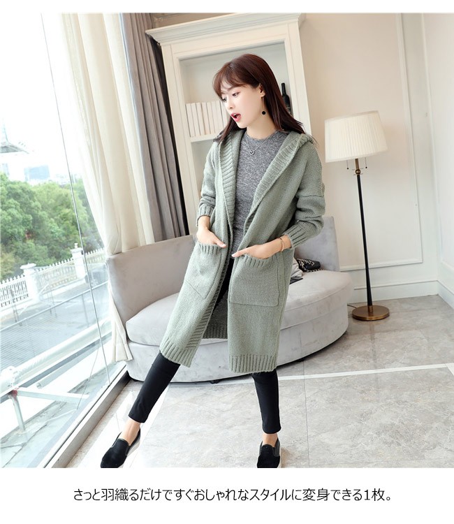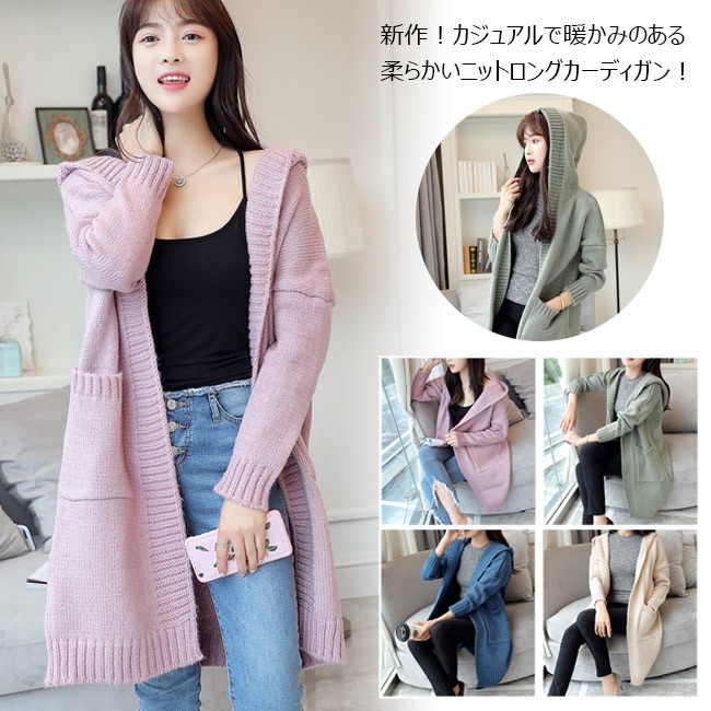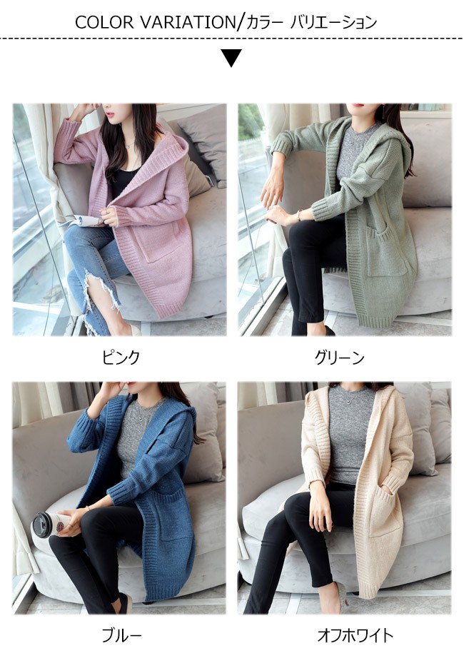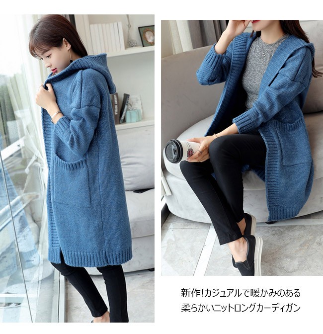 | 商品名 | カーディガン ニットカーディガン 肩掛けカーディガン ロングニット 羽織り レディース 帽子付き 無地 ロング丈 シンプル ゆったり オーバー 厚手 2017秋新作 冬 |