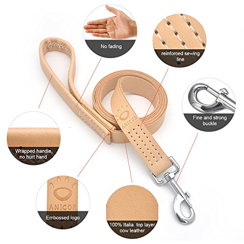 Studio : Meida Publisher : Meida Binding : Misc. Product Description ANICOR dog leash comes to the rescue ! Do you worry about the poor quality dog leash that will hurt your hand when your dog pulled hard ? Do you fear your strong dog breaking the leash hook and escaping ? Do you worry about that the dog leash will be faded ? None of this will happen in our leash ! FEATURES: ? MATERIAL : 100% Italian cowhide gives it a rich and warm tone that looks completely natural while making it stronger. ? 3 COLORS : Beige, Dark brown, Redwine. ? 6 FT. LENGTH : This length is recommended by pro-trainers around the world for walking and training. With the added benefit of the traffic handle, this is a leash you will love to use everyday. ? TRAFFIC HANDLE : This gives you complete control when you have a dog that likes to pull. If your in a tight spot you have the ability to control your dog from two locations on the leash. The traffic handle works great for busy streets, intersections or when you have another dog that's not so nice. ? HANDMADE : Every leash is braided by hand to offer superior strength and durability. Heavy-duty and handmade with attention to every detail. ? SOLID BRASS SNAP : The brass hardware is lacquered to prevent rust.This keeps the snap rust proof in all weather conditions. CONTACT US Any questions or suggestion, you can contact us and we will response in 24 hours. 0