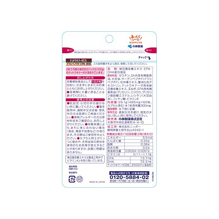원본상품명: 小林製?の?養補助食品 ナットウキナ?ゼEX 60粒