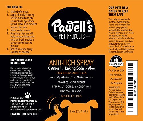100% SAFE & ALL NATURAL SENSITIVE SKIN FORMULA: Have you had enough with pet products and anti-itch solutions full of additives, steroids and harsh chemicals? Our pets rely on us to keep them safe! Say no to unreliable, toxic pet products. You have just found the most natural, high quality, hypoallergenic anti-itch dog, cat & pet spray! Do not compromise with anything other than perfection when picking your pets' sprays! Now you've got Pawell's Pet Products by your side!