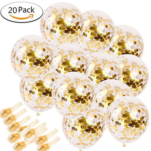 Feature: balloons and confetti are together,so you can use them directly special combination: balloon with confetti is very special, the suitable size confetti can decorate the balloon well Specification: Material:latexpaper Color:transparentgold Product size:13 cm long and 6.5 cm wide Product weight: 2.4 ounce IMPORTANT: As the gold confetti is heavier than the helium, will naturally moves toward the direction of gravity. So, before inflating the balloon, spray a little bit of water into the balloon and rub the confetti with your hands repeatedly to distribute them uniform inside the balloon, so that the moisture helps the pieces of gold confetti stick to the balloon.
