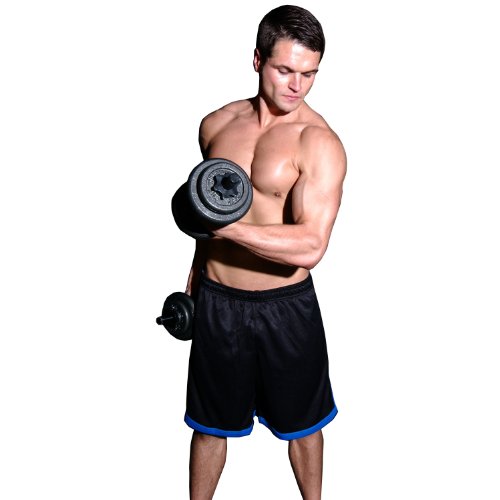 The Fuel Pureformance 40-Pound Dumbbell Set is an effective workout choice for both beginners and advanced fitness enthusiasts. The set comes with several weight plates that allow you to create different weight combinations with the dumbbells. Weights can be gradually added as the workouts intensify. Fully adjustable with four 6 lb plates, four 2.5 lb plates, 2 threaded solid dumbbell handles, and 4 spin-lock collars. Plates are made of solid cast iron construction with a baked enamel finish. Ideal for home use. Total combined weight of 40 lbs consist of handles, plates and collars