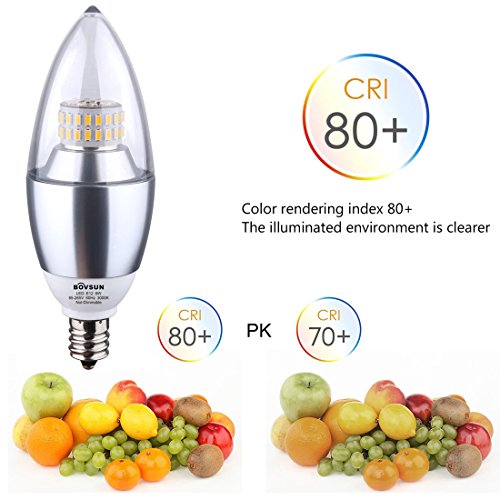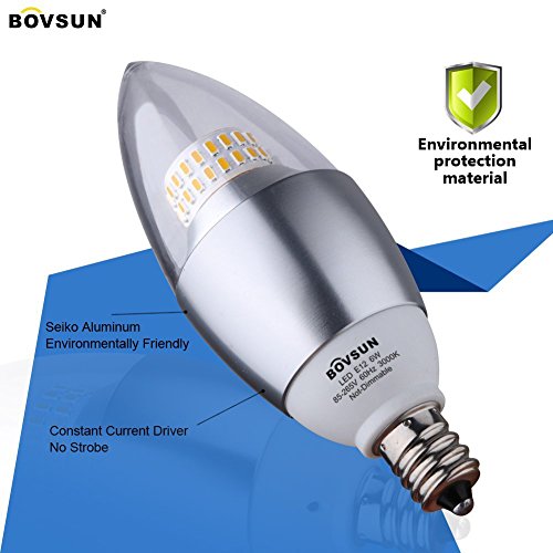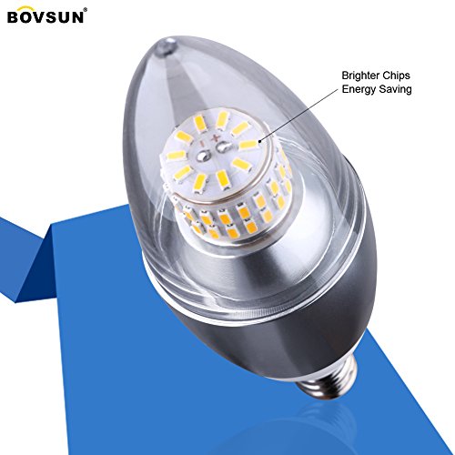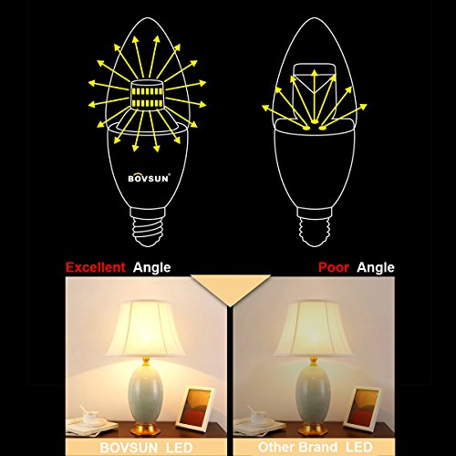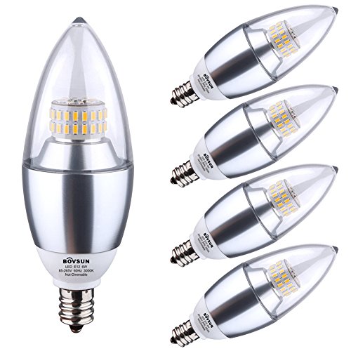 BOVSUN 6W Candelabra Light Bulbs, (60W Incandescent Equivalent), E12 Candelabra Base, 3000K Warm Light, Decorative Candle Light Bulb, Not-Dimmable 5-Pack