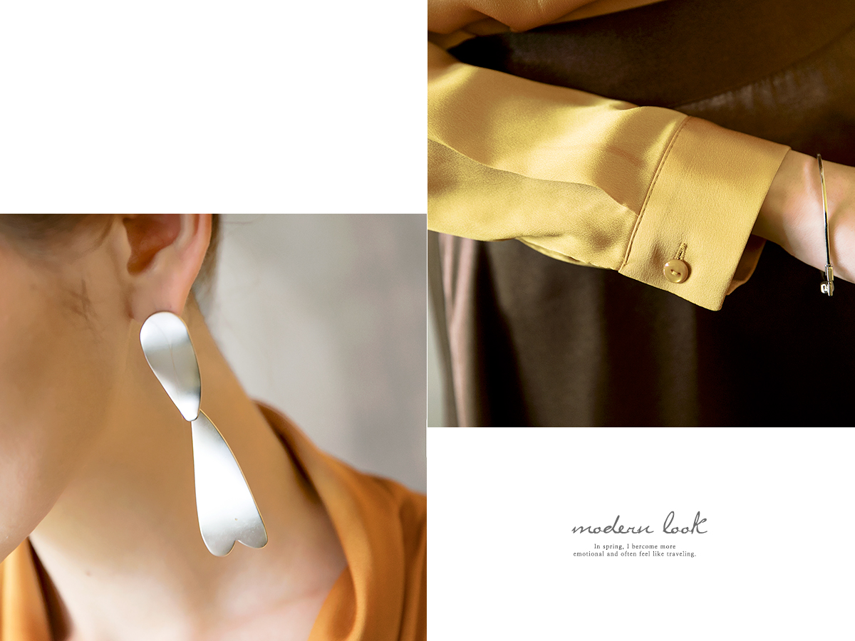 B2311 멜티 드레이프 셔링 블라우스 Mustard