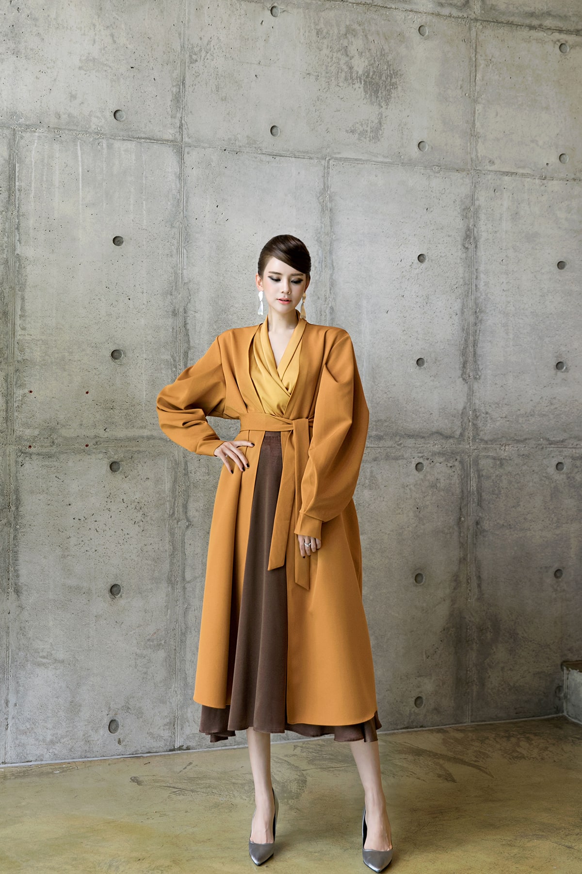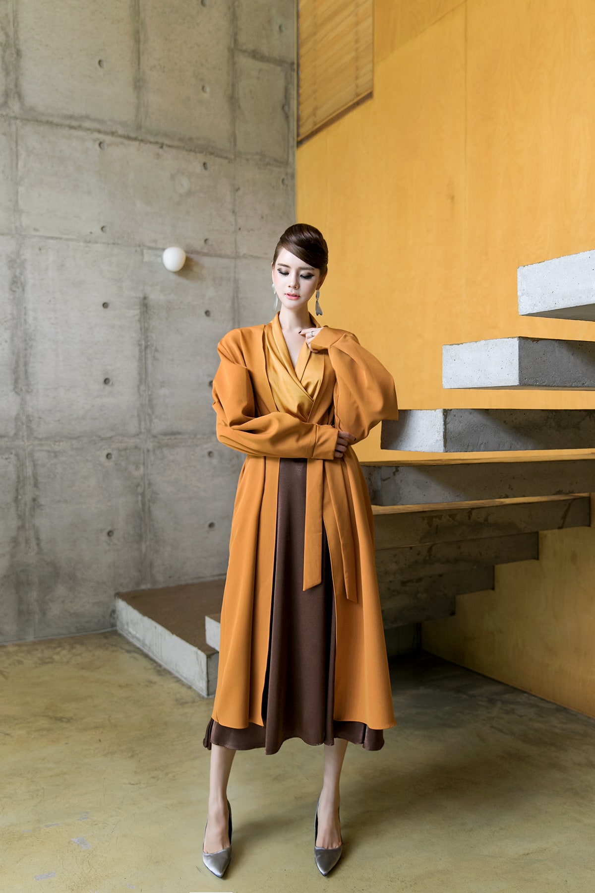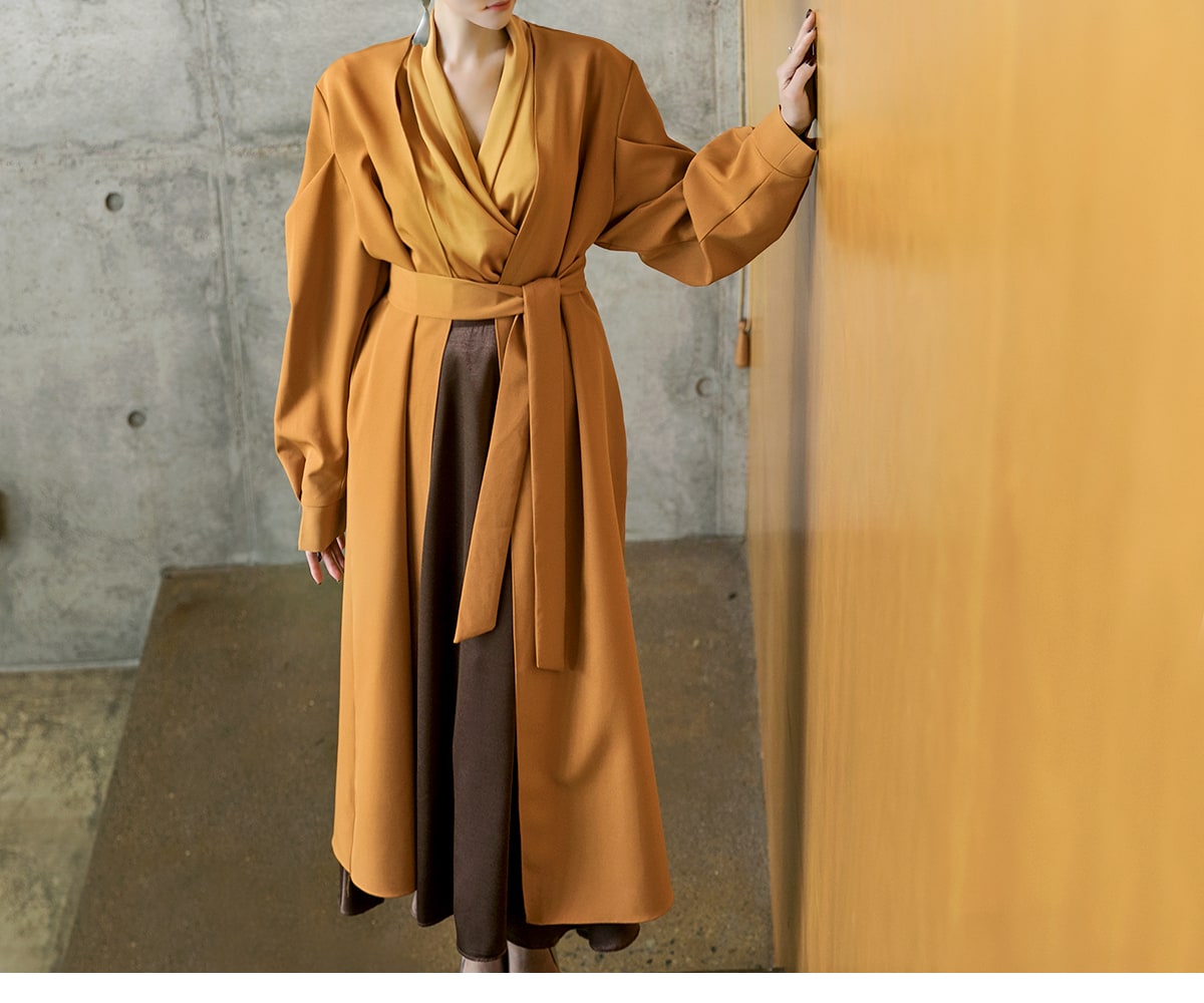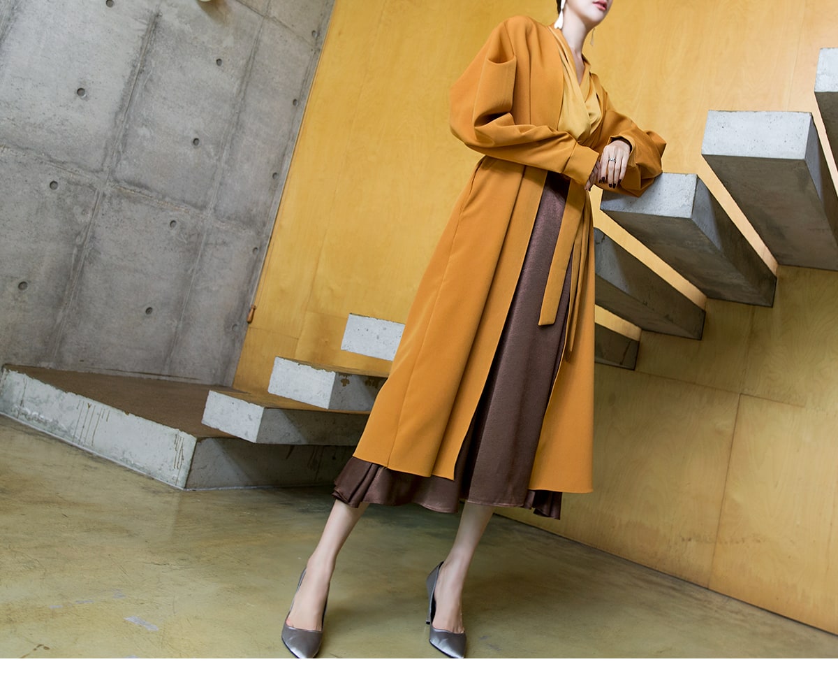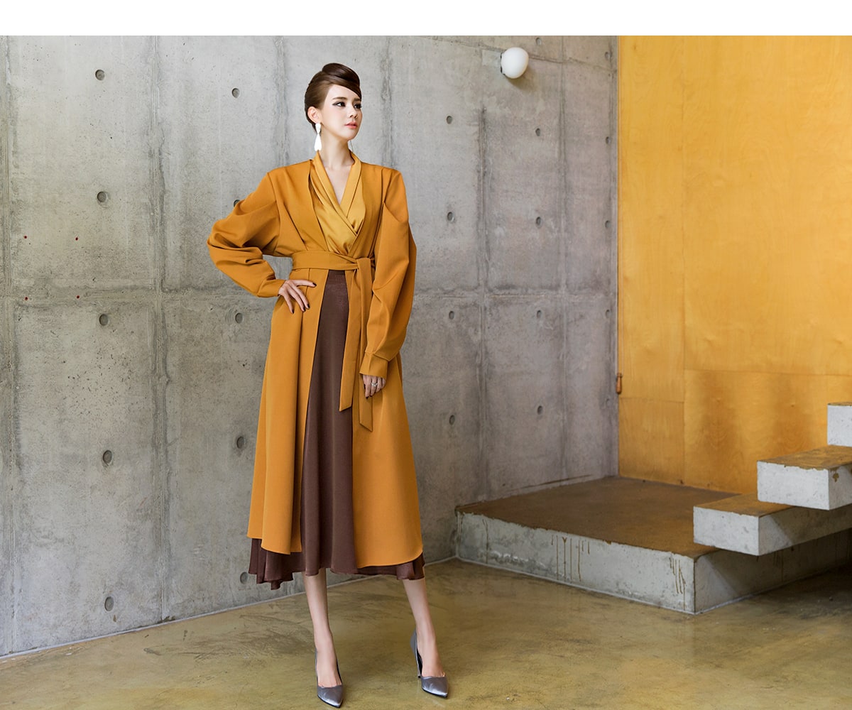 J-5017 네추럴 핀턱 롱 코트(벨트set) Mustard