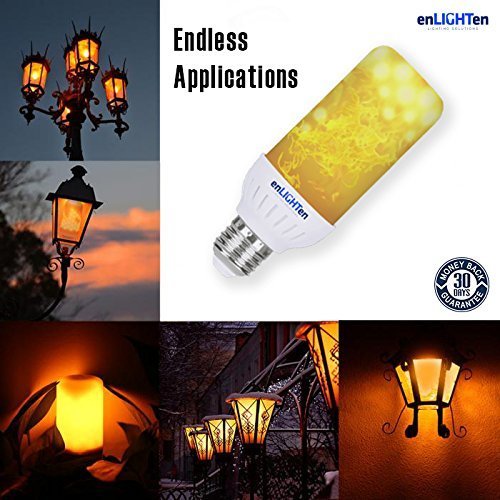 - NEW MODEL FOR 2018 - CAN BE INVERTED DOWN: While standard LED flame light bulbs can't be installed upside down, enLIGHTen's gravity sensor allows the bulb to be installed either way. The flame will simply come up from the bottom top, or the tip to the bottom, allowing you to use them in outdoor lanterns, lamps & lighting fixtures.