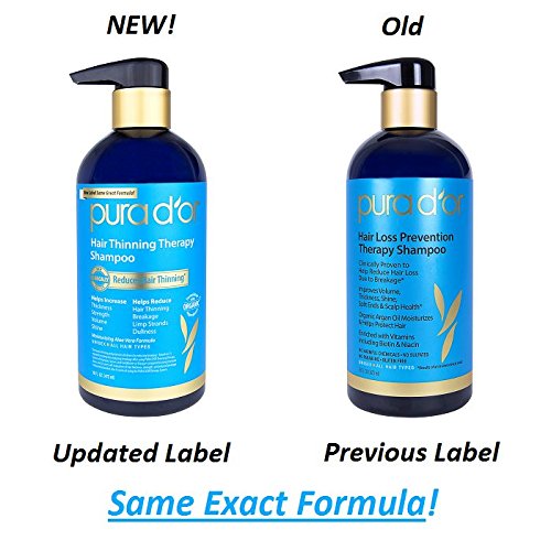 PURA D'OR Hair Thinning Therapy Shampoo, Infused with Organic Argan Oil, Biotin & Natural Ingredients, 16 Fl Oz (Packaging may vary)