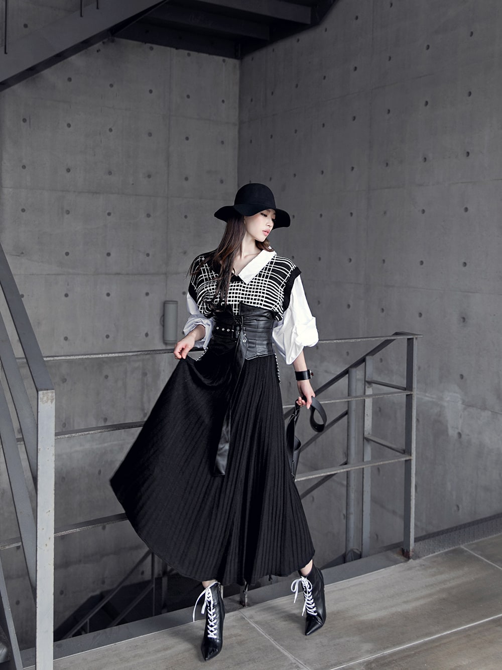 AC-481 모더니즘 울 페도라 햇 Black