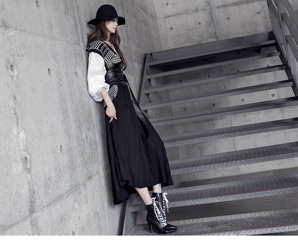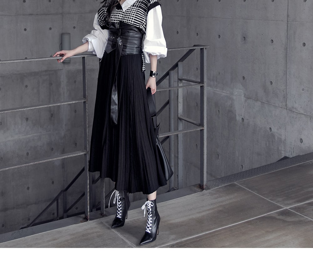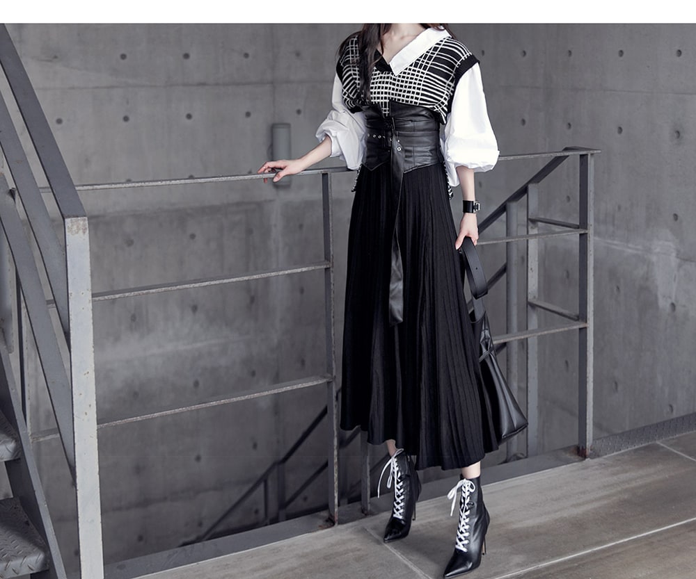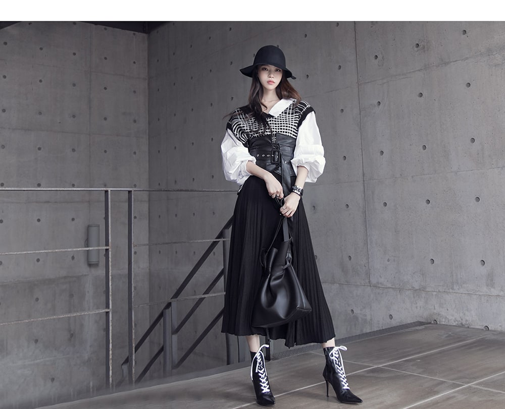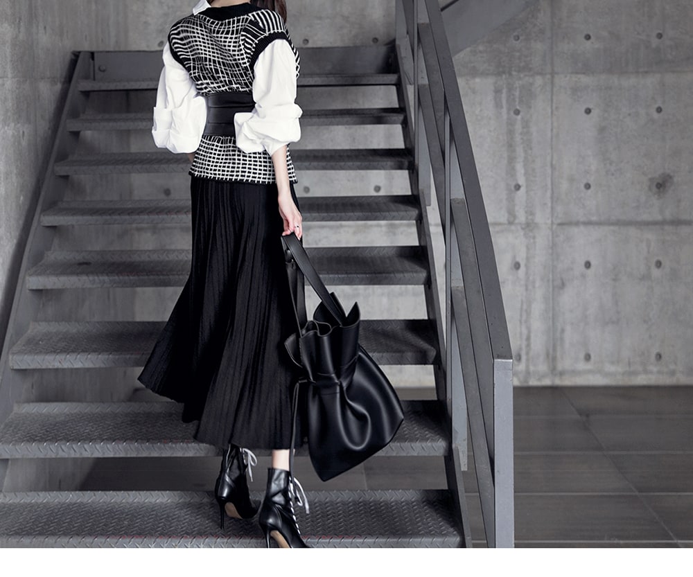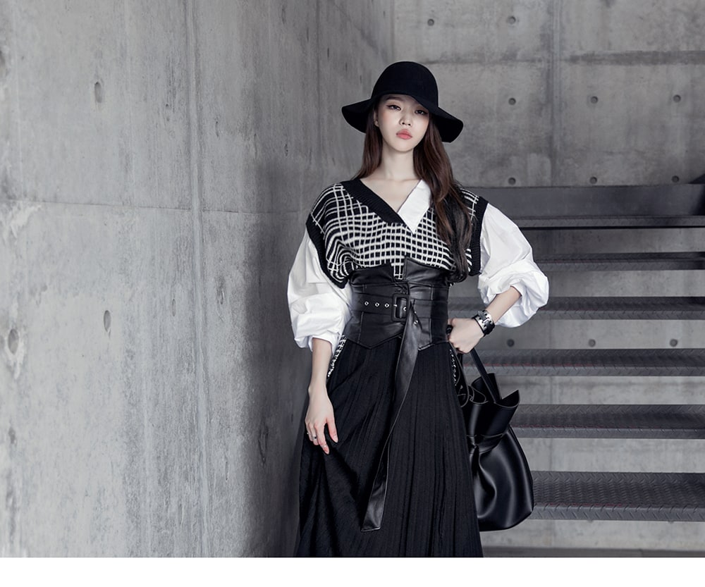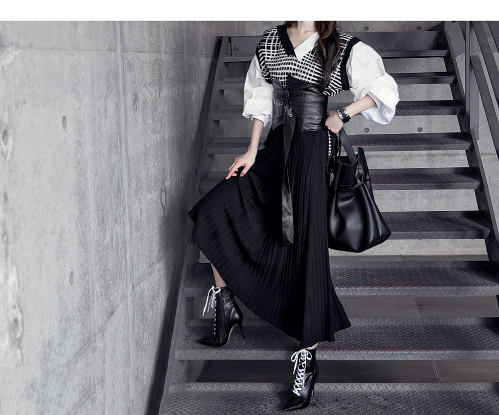 B2315 어나더 레이어드 니트 블라우스 Black mix