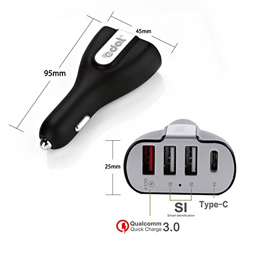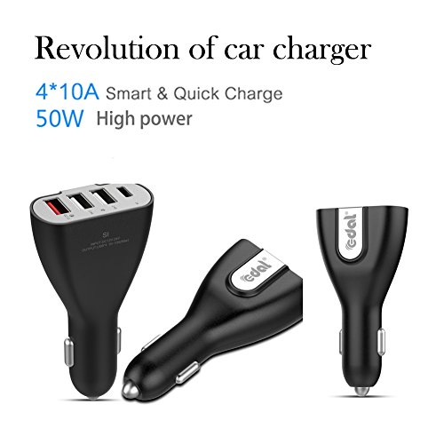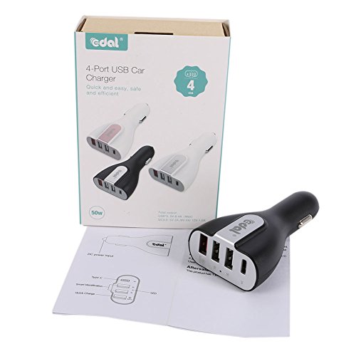 Edal 50W Four USB Car Charger, With A QC3.0 and TYPE-C port PowerDrive 2 for iPhone 7 7PLUS, iPad Air/Mini/Pro, iPod Touch 6th,samaung:S5,S6,NOTE5,NOTE7, HUAWEI P8,P9