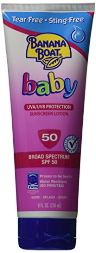 Banana Boat Baby Tear Free is as mild as water to baby's eyes and skin. With no stinging or tears, this hypoallergenic sunblock lotion contains titanium dioxide for the broad spectrum UVA and UVB protection recommended for baby's sensitive skin. This sunblock lotion is PABA and fragrance free.Feature