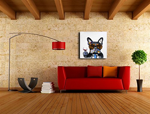 Size:30x30 Inch 24x24 inch Color: Muticolor dog and wine with glasses