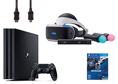 Includes: VR headset, Processor unit, VR headset connection cable, HDMI cable, USB cable, Stereo headphones, AC power cord, AC adaptor, PlayStation VR Demo Disc, PlayStation Camera, 2 PlayStation Move motion controllers, and Sony PlayStation 4 Pro - 1TB and VR Game Disc PSVR DriveClub - PlayStation 4
