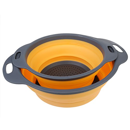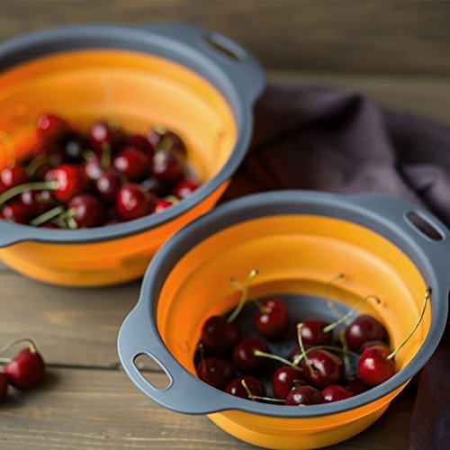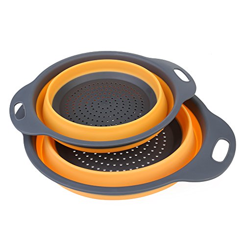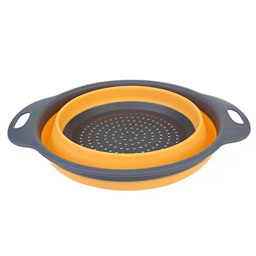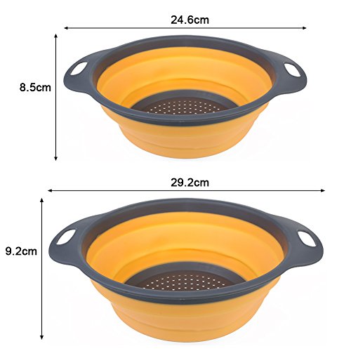 Collapsible Silicone Colander Set, 2 Sizes Folding Strainers Set 8"(2 Quart) and 9.5"(3 Quart) (Orange)