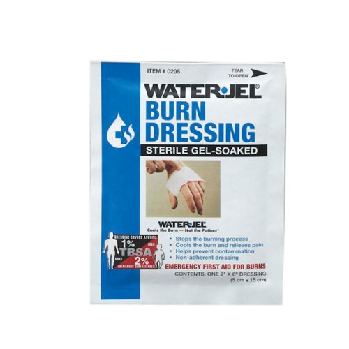 -. Binding : Health and Beauty -. Brand : PhysiciansCare -. EAN : 0743537206018 -. Feature : Manufactured by Waterjel / Sterile gel-soaked burn dressing / Cooling gel for burns / Sterile and latex free / It's a water-based, water-soluble gel that rinses off quickly with water or saline / Contents inside box may be substituted with equivalent products in different brand names / The xpress first aid easy reordering system makes it effortless to keep your kit in stock and up to date / Each of the essential first aid supplies utilizes our reorder card system for easily keeping your xpress first aid kit in stock / Refill boxes contain just the right amount of each first aid component -. IsAdultProduct : 0 -. Label : PhysiciansCare -. Manufacturer : PhysiciansCare -. Model : 2056 -. MPN : 2056 -. NumberOfItems : 1 -. PackageQuantity : 1 -. PartNumber : 2056 -. ProductGroup : Health and Beauty -. ProductTypeName : HEALTH_PERSONAL_CARE -. PublicationDate : 2012-06-14 -. Publisher : PhysiciansCare -. Studio : PhysiciansCare -. Title : WaterJel Burn Dressing Burn Dressing Sterile Gel-Soaked ,First Aid , 2 Inches X 6 Inches -. UPC : 743537206018
