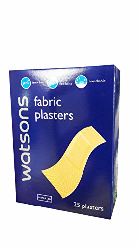 -. Title : 3 packs of Watsons Fabric Plasters. Latex free, Extra flexibility, Breathable, Sterile. (Size of each plaster: 65mm x 19mm.) (25 plasters/ pack)