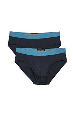 Emporio Armani Men's Stretch Cotton 2 Pack Brief, Marine/Marine, M