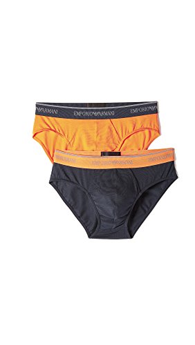 Emporio Armani Men's Stretch Cotton 2 Pack Brief, Marine/Pumpkin, M