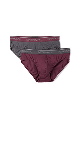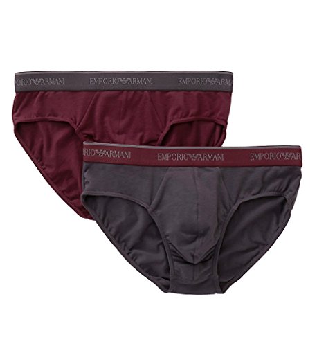 Emporio Armani Men's Stretch Cotton 2 Pack Brief, Smoke/Aubergine, S