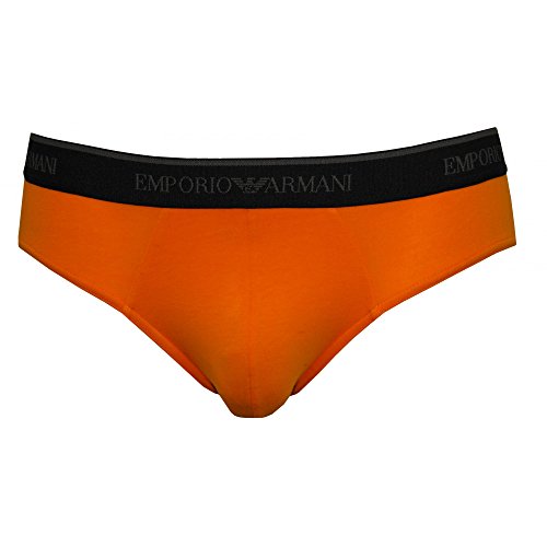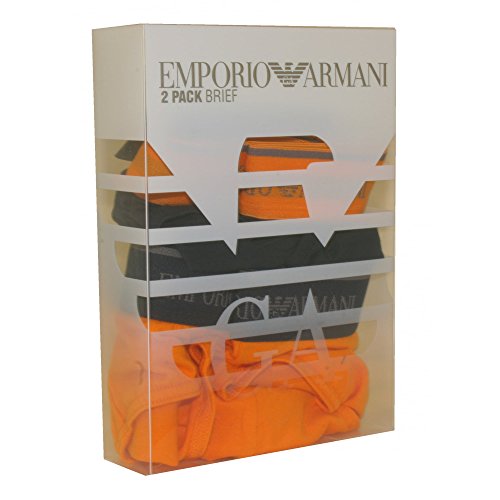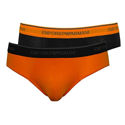 Emporio Armani Men's Stretch Cotton 2 Pack Brief, Marine/Pumpkin, L
