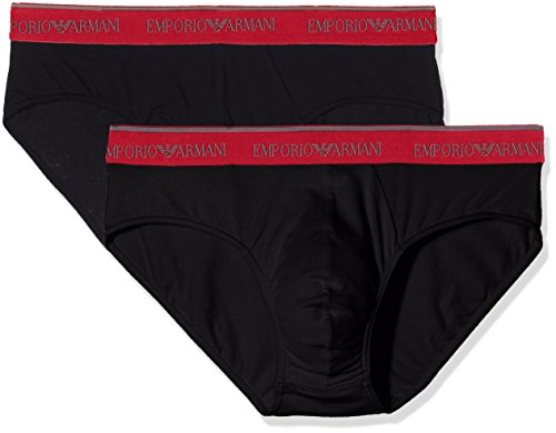 Emporio Armani Men's Stretch Cotton 2 Pack Brief, Black/Black, S