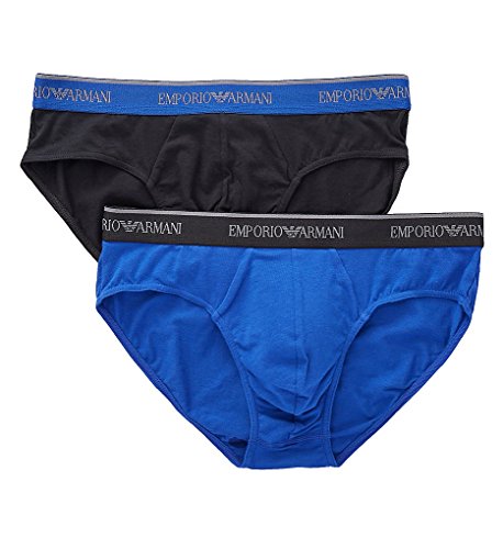 Emporio Armani Men's Stretch Cotton 2 Pack Brief, Blue/Electric Blue, M