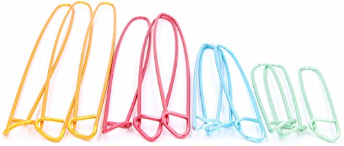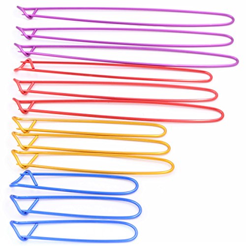 - ► VARIOUS SIZES - 4 sizes aluminum knitting stitch holders: 6.5cm, 11.5cm, 16cm, 19cm, can meet your different knitting needs. Package includes 12 PCS stitch holders for crochet, 3 PCS in each size, enough amount for you to mark the crochet knitting needle stitches, satisfy your knitting need