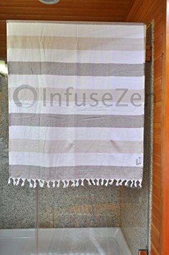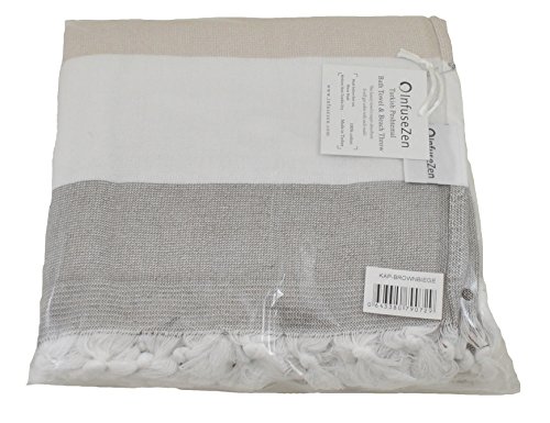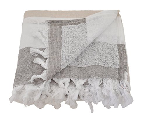 Large Turkish Towel with Soft Terryback, Striped Peshtemal Terry Back Turkish Bath Towel, Gym & Beach Towel, Thin Oversized Hammam Towel, Plus Size Fouta, Big Bath Sheet (Brown & Beige)