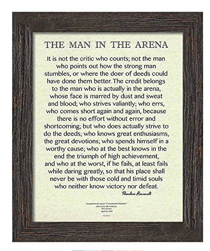 This is the most popular of Theodore Roosevelt's many inspiring Quotes. I have prepared my copyright design in Classic style and printed it on an 11x14 Archival Parchment. Any framed images are only shown as possible display examples from my gallery. (beware poor quality counterfeits from foreign sellers)