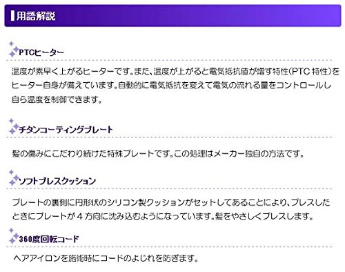 재빠른 가열에 안정 도의 높은PTC히터에 의해불과 30초에 퀵 스타트(100도 설정시)☆60 분자동 전원OFF기능 탑재.하드한 움직임에 대응 할 수 있는360도 회전 코드.업무용 헤어아이런(고데기)의 표준 사양의 롱 코드2.6m을 채용! !