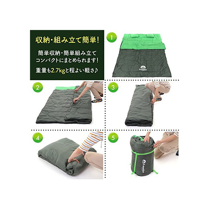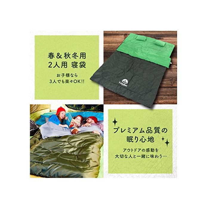 원본상품명: Lander(ランダ?) ?袋 2人用 封筒型 丸洗い 連結可能 最低使用?度 -5度 枕付き 春秋冬用 La-sb1