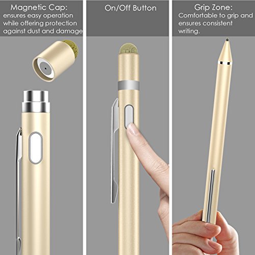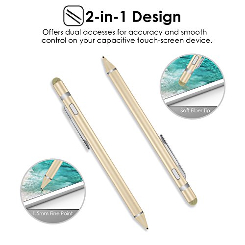 -. Title : MoKo Universal Active Stylus, 2 in 1 High Precision and Sensitivity 1.5mm Capacitive Pen, Metal Stylus Pen for Touch Screen Devices Smartphones & Tablets (iPad, iPhone 8, Samsung and More)